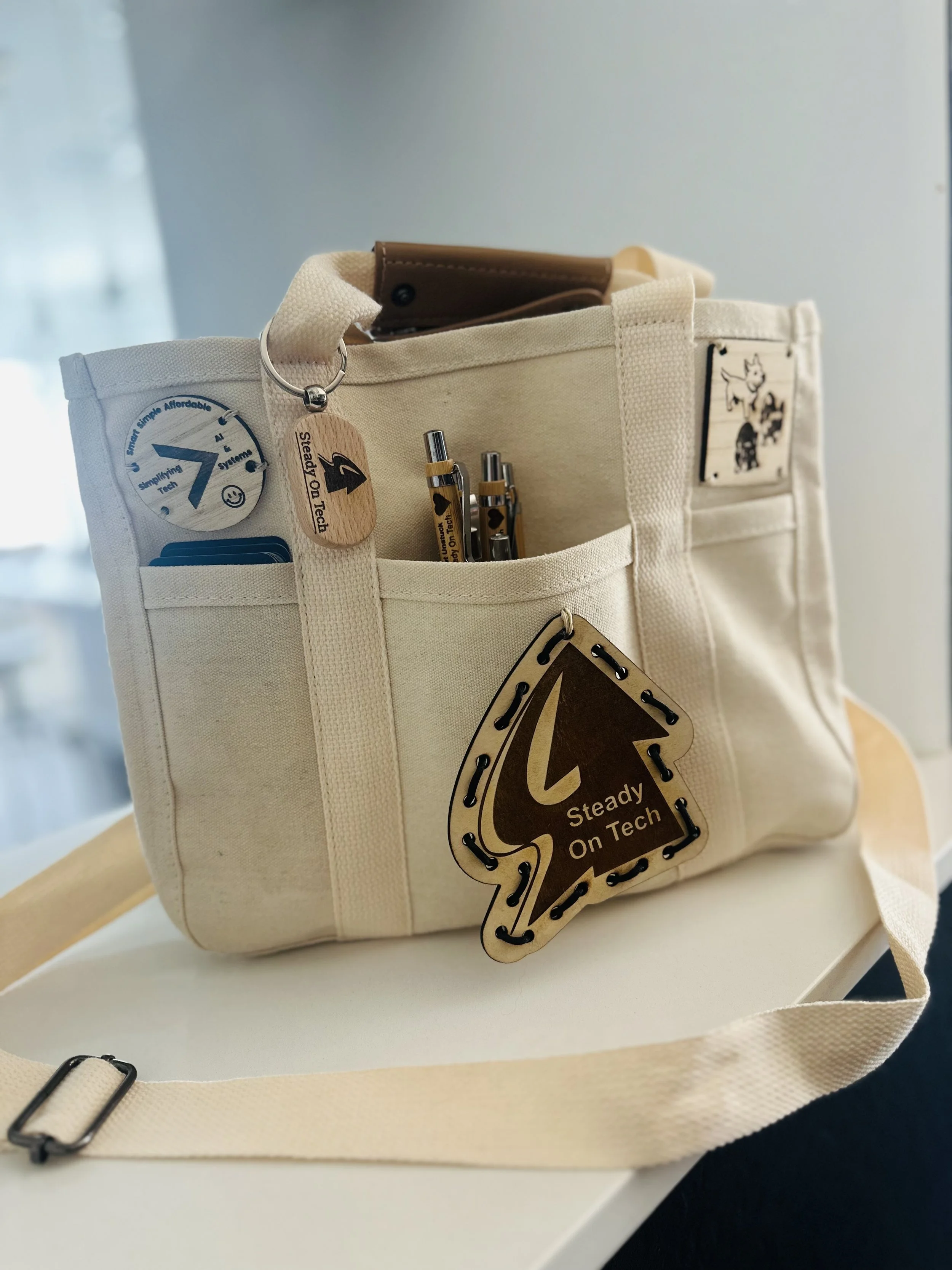 When you receive a gift from us, you’re seeing the result of a thoughtful collaboration between Jack, Wendy and Ethan, crafted with the intention of leaving a lasting impression. These aren’t just promotional items; they’re expressions of gratitude and purpose, infused with the same passion and dedication that drive us at Steady On Tech. It’s our way of saying, “You matter to us,” with something truly special and meaningful.